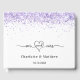 Un arrière - plan blanc élégant avec de la poussière de parties scintillant violet. M. et Mme avec un coeur. Personnalisez et ajoutez vos noms et votre date de mariage. Personnalisez et ajoutez votre texte sur la colonne vertébrale.