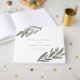 Livre d'or de mariage élégant aquarelle botanique avec de belles branches d'olivier dessinées à la main encadrant vos détails. Personnalisez avec vos noms et date de mariage dans une typographie de couleur naturelle.