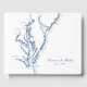 Vous recherchez un livre d'or pour votre mariage à Atlantic City, NJ? Ce livre d'hôtes de la carte de la baie de Chesapeake présente une carte dessinée à la main de la région de la baie de Chesapeake avec un petit coeur au-dessus d'Atlantic City (vous pouvez déplacer le coeur en cliquant sur "Modifier en utilisant l'outil de conception" sous "personnaliser"). Customisez-le avec le nom du couple et la date du mariage sur la couverture et une photo au dos