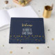 Chic Moderne Élégant Simple Bleu Jaune Mariage | Livre d'invité Mariage Présentant notre forfait mariage "Nautical Elegance" - une collection chic et moderne qui allie simplicité et sophistication intemporelle. Avec son étonnant jeu de couleurs bleu marine et jaune, cet ensemble ajoute une touche de modernité à votre journée spéciale. Des invitations à la décoration, chaque détail est soigné, créant une ambiance à la fois élégante et classique. Laissez-vous séduire par le charme de la simplicité, avec une touche contemporaine pour un mariage qui rayonne sur le raffinement chic.