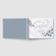 Livre d'or mariage - Dusty Blue Floral pour correspondre à votre thème mariage, roses Aquarelle, feuilles et bourgeons dans le moderne chic bleu poussiéreux entourent un cadre géométrique de terrarium style argenté avec une végétation sage. Personnaliser texte, style de police, couleur et taille. OEuvre originale créée pour BarefootBride™ par © WhimsicalArtwork™ - Il s'agit d'une suite de papier à lettres Mariage complète avec papier à lettres mariage, baby shower et autres articles de papeterie d'événements correspondants.