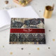 Livre d'invité mariage d'inspiration gothique fait dans un damas noir en détresse, qui semble se dérouler. Les graphiques d'un ruban rouge avec bord de dentelle d'ivoire courent au milieu du livre. Personnalisez les champs de texte pour votre mariage.