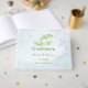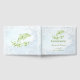 Enregistrez les invités à votre grande journée avec un livre d'or vert pour le mariage des dauphins. Le design du livre d'or est orné d'un dauphin de style métallique contre un arrière - plan muet des vagues de l'océan orné d'élégants rouleaux. Papier à lettres mariage supplémentaire disponible avec cette conception aussi.
