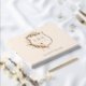Un livre d'hôte mariage de automne de monogramme en écusson fleurie avec votre date de monogramme et de mariage au centre en feuille d'or, sur un arrière - plan pêche.