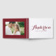 Elégant livre d'invités photo avec calligraphie moderne et typographie simple avec un modèle photo pour le dos. Customisez en ajoutant vos propres détails. Les couleurs sont le rouge bordeaux et le blanc, parfait pour les mariages d'automne ou d'automne et d'autres événements. Ce sera un parfait souvenir. Il fait partie d'une collection de mariages.