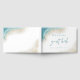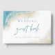 Ce livre d'or d'invité de mariage de destination côtière estivale élégant présente une plage peinte à la main à l'aquarelle dans le coin avec des vagues de l'océan léchant le rivage.