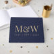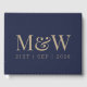 Livre d'or Mariage de Monogramme de la Marine moderne. Un design de typographie moderne et design qui est magnifique et polyvalent. Montré dans le texte de couleur or antique sur bleu marine foncé. Customisez avec vos initiales de monogramme de mariée et de chambre et la date du mariage sur la couverture avant, ainsi que les noms sur la colonne vertébrale. Nous vous invitations à visiter notre magasin Zazzle, Austen & Grace, pour voir la suite mariage complète, les produits assortis et plus encore. Veuillez nous contacter si vous avez besoin d'aide.