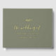 Ce livre d'hôtes de feuille minimaliste en feuille d'or vert foncé monogramme en feuille de mariage est parfait pour un mariage élégant. Le design se compose d'une simple silhouette de verdure en feuille d'or pressée luxueuse avec un style minimaliste classique sur un arrière - plan vert olive. Personnalisez la couverture avant avec les noms du couple et la date du mariage.
