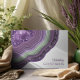 Tous les designs mariages ne sont pas égaux. L'agencement asymétrique des pièces de cet ensemble mariage frappant prouve que ce n'est pas une mauvaise chose ! Des bandes de couleur ondulées dans des tons contrastés violet violet et vert avec un centre de cristal scintillant forment une géode/agate accent sur la plupart des pièces de l'ensemble. Le mariage "Livre d'Invité" ci-dessus est accompagné d'un modèle pour ajouter un message personnel au recto, vos noms et la date du mariage sur la couverture arrière. Recherchez ID647 pour voir toutes les pièces de coordination de cet ensemble.