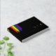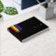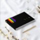 Livre d'invités mariage LGBTQ noir et arc-en-ciel avec drapeau de la fierté arc-en-ciel dessiné avec des touches désordonnées et feuille d'or texte personnalisé contre un arrière - plan noir. Livre d'hôtes mariage gay en noir avec traits de pinceau arc-en-ciel et texte de feuille d'or personnalisé. Livre d'or de Lesbian mariage avec texte or et des coups de pinceau de couleur arc-en-ciel. M. & M. en feuille d'or qui peut facilement être changée en Mme & Mme pour un mariage lesbien.