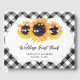 Complétez votre fête de mariage rustique, de jardin, de jardin ou de grange avec ce livre d'hôtes mariage floral à fleurs de buffle noir et blanc avec des fleurs de tournesol et des lampes à cordes sur un arrière - plan à damiers noir et blanc. Éléments correspondants disponibles.