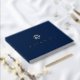 Ce livre d'hôtes simple et propre, d'inspiration hivernale minime, en papier d'aluminium, est la meilleure façon de capturer des messages sincères et les meilleurs voeux de vos amis et de votre famille lors de votre journée spéciale. Il dispose d'un simple flocon de neige dans le style minimaliste et vos noms et Personnaliser de date deux lignes de texte personnalisé avec typographie traditionnelle classique en argent sur un élégant arrière - plan de marine. Les couleurs sont modifiables !