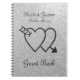 Livre d'or mariage | double coeur et flèche. Elégant livre d'or argenté avec faux étincelles et parties scintillant. Styslih chic typographie script avec symbole d'amour. Glitterie et brillante texture arrière - plan.
