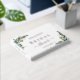 Un fond blanc classique, texte en feuille d'or rose. Décoré de verdure d'eucalyptus et de fleurs de lavande. Personnalisez et ajoutez le nom de la future mariée et la date de la douche nuptiale.