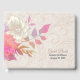 Livre d'hôtes mariage élégant réalisé dans un damas brun et plein d'ivoire, avec de jolies fleurs de corail, roses et d'ivoire. Personnalisez les champs de texte personnalisés, en bas à droite, pour le jour de votre mariage.
