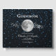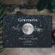 Enregistrez les invités à votre grande journée avec un livre d'or Lunar Wedding Day Guestbook. Le design du livre d'or est orné d'un ciel étoilé orné d'une pleine lune et d'un sentier en grappes d'étoiles. Papier à lettres mariage supplémentaire disponible avec cette conception aussi.