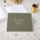 Ce livre d'hôtes moderne et chic, vert olive, est parfait pour un mariage simple. Le design boisé boho comprend une typographie bohème rustique unique et élégante dans une couleur verte boisée minimale. Personnalisez ce livre d'or avec les noms du couple et la date du mariage.