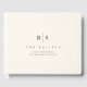 Un élégant monogramme mariage livre d'or avec vos initiales, noms et date de mariage en lettres noires croustillantes sur un riche arrière - plan crème en ivoire. Ajoutez du texte personnalisé supplémentaire à la colonne vertébrale.