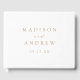Elégant livre d'or de mariage avec vos noms et date mariage en lettres d'or sur un arrière - plan blanc. Personnalisez la colonne vertébrale du simple livre d'hôtes mariage avec votre nom et votre date de mariage.