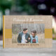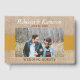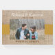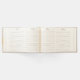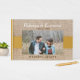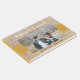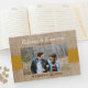 Le design de ce livre d'hôtes mariage comporte une photo de burlap texturé et est accentué d'une bande d'or solide à travers le centre. Un cadre photo personnalisé, au centre de l'avant, permet d'ajouter une photo du couple. Le texte personnalisé donne le nom de la mariée et du marié ainsi que la date du mariage.