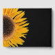 Mariage campagnard rustique tournesol jaune sur noir arrière - plan pays accueil livre d'or pour mariée et mariée. Beau design élégant simple d'impression de fleurs. Copyright de l'image Marg Seregelyi Photography.
