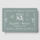 Un livre d'hôtes original d'inspiration rétro, à la sauge verte, orné d'un cadre blanc ondulé orné de coquettes, d'illustrations dessinées à la main de fantaisie d'un coeur, d'étoiles et de verres à vin, et des noms de la mariée et du marié dans un script blanc ludique.
