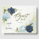 Beau livre d'hôtes mariage avec fleurs bleu marine et poussiéreuses et feuilles verts Les détails de la parties scintillant d'or sont simulés. POUR PLUS DE PRODUITS CORRESPONDANTS cliquez sur la collection ci-dessus ou contactez-moi
