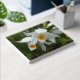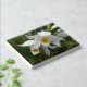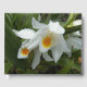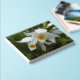 Livre d'or sur le thème floral pour un enterrement ou un mémorial qui présente une photo de fleurs blanches d'orchidée de Coelogyne ainsi que le nom, la naissance et les dates de décès de la personne décédée imprimé en papier peint en argent stylisé. Le dos du livre d'invités présente une image similaire. Modifiez le nom et les dates sur le devant du livre d'or et remplacez par vos propres noms et dates selon vos besoins. Sélectionnez votre couleur d'impression de feuille.