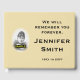 Ce livre d'or funéraire/commémoratif respectable présente le message "Nous nous souviendrons de vous pour toujours", ainsi que le nom customisé et les dates de naissance et de décès de l'individu qui est décédé. Il dispose également d'espace pour une photo personnalisée. Il pourrait être utilisé pour enregistrer de bons souvenirs de quelqu'un qui est récemment décédé.