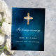 Un livre d'hôtes pour un service commémoratif ou funéraire. Un arrière - plan classique du ciel bleu foncé et une croix dorée. Personnalisez et ajoutez un nom et des dates. Lettres blanches.