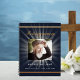 Un livre d'hôtes pour un service commémoratif ou funéraire. Un arrière - plan bleu foncé classique, un cadre en faux or sur le devant. Soleil, rayons étoiles derrière la photo. Personnalisez et ajoutez une photo, un nom et des dates.