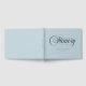 Customer specific, memorial, elegant, simpel "In Loving memory" handwriting font, light-blue, funeral guest book.