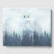 Ce magnifique livre d'hôtes mariage présente un design rustique et élégant, avec un paysage montagneux d'épinettes bleues ou de pins, noyés dans la brume ou le brouillard. Le texte dit : Le Mariage de... avec vos noms et la date du mariage. Une façon merveilleuse pour vos invités de laisser des voeux et un souvenir intemporel de votre journée spéciale. Parfait pour une cérémonie en plein air ou en hiver.