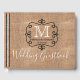 Mariage campagnard livre d'hôtes avec un imprimé de burlap rustique. Personnalisez avec le monogramme initial, le nom de la mariée et du marié et la date du mariage.