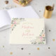 L'élégant design des livres d'invités de mariage comprend un monogramme personnalisé qui peut être personnalisé encadré par un arrangement floral de boho printanier de fleurs romantiques, des feuilles botaniques et des accents de plume d'oiseau rustique. Les tons vintages et doux sont le rose, la pêche, la crème, le vert, le gris et l'or.