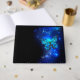 blue, glowing butterflies morpho on a dark ground. Morphine. Design avec des babouins.