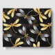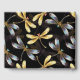 Motif sans couture avec or, bijoux, libellules brillantes avec ailes détaillées et pétillantes sur arrière - plan noir. libellule d'or.