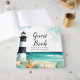 Beautiful birthday party guest book with a nautical black and white lighthouse, starfish and shells. Perfect for a birthday party. The words can be changed to suit your own details or requirements