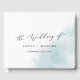 Ce livre d'hôtes mariage à l'aquarelle bleu laver monogramme retour est parfait pour un mariage moderne. Le design simple et classique présente une touche d'eau bleu clair pastel avec un style minimaliste et élégant. Personnalisez la couverture avec les noms de la mariée et du marié et la date du mariage.