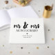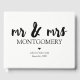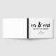 Livre d'or mariage en noir et blanc avec mr & mrs écrit en gras police calligraphie au-dessus de votre nom de famille partagé et date du mariage.