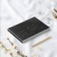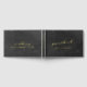 Un élégant et sophistiqué livre d'or noir et mariage avec calligraphie à l'étrier de feuille d'or avec vos noms sur les couvertures avant, colonne vertébrale et arrière dans une police de san serif moderne. Le livre dit, "livre d'invité", à l'avant et mariage à l'arrière, dans un script de police d'échange.