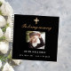 Un livre d'hôtes pour un service commémoratif ou funéraire. Un arrière - plan noir classique, une fausse croix d'or sur le devant. Personnalisez et ajoutez une photo, un nom et des dates.