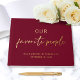 Livre d'invité chic mariage rouge bordeaux avec votre choix d'or réel, d'argent ou d'or rose, "Nos gens préférés" en typographie simple et un script moderne, vos noms dans la typographie serif classique élégante et votre date mariage. Personnalisez votre titre sur le dos.