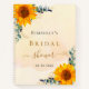 Un arrière - plan doré à l'eau. Décoré de tournesols, de verdure d'eucalyptus et de feuillage doré. Ajoutez un nom et une date.