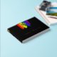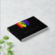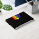 Charmant livre d'hôtes de mariage lgbtq avec le drapeau de la fierté arc-en-ciel dessiné avec des touches désordonnées et orné d'un coeur de feuille d'or contre un arrière - plan noir. Livre d'hôtes mariage gay en noir avec un coeur et arc-en-ciel brokies et texte de feuille d'or personnalisé. Livre d'or mariage lesbienne avec un coeur sur les coups de pinceau de couleur arc-en-ciel.
