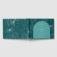 Illustration d'art en ligne blanche de palmier feuille motif sur turquoise vert arrière - plan avec texte blanc et coquillage sur arche turquoise avec bordure grise.