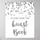 Veuillez signer notre pancarte de livre d'or de mariage en motif confettis blanc et argent avec lettrage écrit à la main. Parfait pour les mariages, les baby showers, les bridal showers, les anniversaires de mariage, les anniversaires et plus encore.