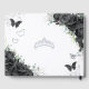 Cherchez votre journée spéciale pour les années à venir avec un livre d'or customisé en argent réel. Avec des roses noirs vibrants, une fille en robe noire glittery et des papillons noirs et argent. Personnalisez-le avec vos détails facilement et rapidement, appuyez simplement sur le bouton Modifier à l'aide de l'outil de conception pour réorganiser et formater le style et le placement du texte. c) Le Happy Cat Studio