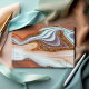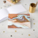 Cet ensemble de design mariage, avec son motif abstrait d'ondulations fluides et de veines d'or scintillant, rappelle les formations rocheuses et les paysages du sud-ouest. Une palette colorée dans les tons de rouille, et de terre cuite à travers le bleu ciel ajoute à l'attrait. Le livre d'or présenté ici présente tout ce qui précède avec un agencement qui le distingue de la foule. Ajoutez facilement vos initiales et la date du mariage à l'aide du modèle fourni. Recherchez ID903 pour voir d'autres choix de couleurs et coordonner des pièces pour cette collection de mariages unique.