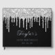 Créez votre propre livre d'or personnalisé pour chaque année ou chaque événement marquant de fête d'anniversaire. Customisez le style de police, la couleur et l'ombre portée. Faux brillant argent gouttant parties scintillant art numérique image graphique sur un arrière - plan noir couleur solide personnalisable. Les éléments scintillants et parties scintillant de ce design moderne girly sont créés avec des graphiques numériques qui s'impriment comme une photo avec une variété de couleurs blanches, argentées et grises. Il y a d'autres couleurs de bordure étincelantes pour la parties scintillant de votre fille.